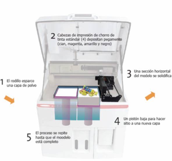 Las impresoras 3D de CONTEX crean modelos físicos partiendo de modelos CAD en formato STL utilizando la tecnología de cabezales de impresión inkjet. Esta tecnología es similar a la utilizada en las impresoras 2D de oficina, pero a diferencia de éstas los cabezales depositan una sustancia líquida que aglutina las capas de polvo, obteniendo mediante la sucesión de capas una pieza de apariencia similar a las obtenidas por sinterizado láser (SLS). Esta tecnología de vanguardia permite la impresión de una pieza a razón de unos 25mm verticales por hora, resultando ser del orden de 5 a 10 veces más rápida que cualquier otra tecnología de prototipado rápido. Además, múltiples partes pueden ser impresas simultáneamente y debido a que no es necesaria la creación de soportes adicionales a las piezas (a diferencia del SLA) el rendimiento y economía del servicio de impresión es máximo.